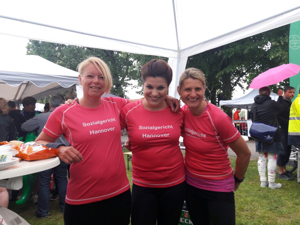 Am 7.6.2017 hat der 18. Niedersächsische Behördenmarathon stattgefunden. Das Sozialgericht Hannover ist wie schon in den vergangenen Jahren mit einer eigenen Staffel für die 6 km lange Strecke rund um den Maschsee angetreten. Trotz der schlechten Witterung haben unsere Läuferinnen und Läufer aus allen Laufbahngruppen tolle Zeiten erzielt und sich gegen starke Konkurrenz von insgesamt 274 Staffeln und beinahe 2.000 Läuferinnen und Läufern behauptet. Wie gewohnt war auch die Unterstützung an der Strecke großartig. Mit der Lautstärke der Fans des Sozialgerichts kann sich keine andere Mannschaft messen.