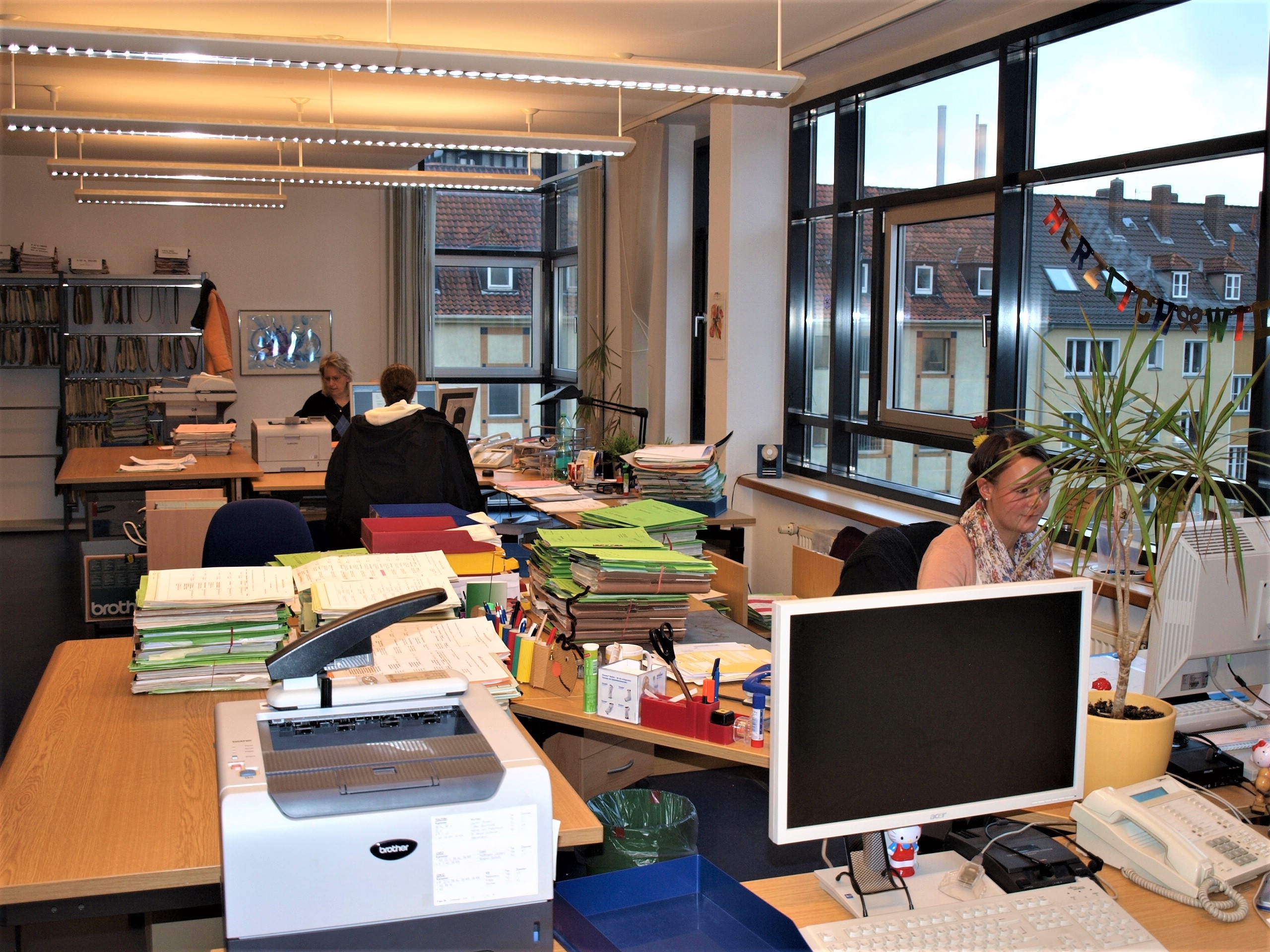 Entsprechend dem Zuwachs der Klageeingänge wuchs auch -wenn auch stets mit Verzögerung- die Anzahl der Richterinnen und Richter und Mitarbeiterinnen und Mitarbeiter. Mit insgesamt 38 Dienstangehörigen begann das Sozialgericht Hannover im Jahre 1954 seine Tätigkeit. 1956 waren bereits insgesamt 57 Dienstangehörige tätig, davon zwölf Richter und eine Richterin. Heute sind über 100 Dienstangehörige, davon 44 Richterinnen und Richter, beschäftigt. Eine genaue Anzahl, insbesondere der Richterinnen und Richter, lässt sich für einen längeren Zeitpunkt nicht festlegen. Denn unsere jungen Richterinnen und Richter nutzen nicht nur auf Grund ihrer Qualität, sondern auch wegen der günstigen Verbindungen gerne die Möglichkeit, sich an das Niedersächsische Justizministerium, das Landessozialgericht in Celle oder an das Bundessozialgericht in Kassel abordnen zu lassen.